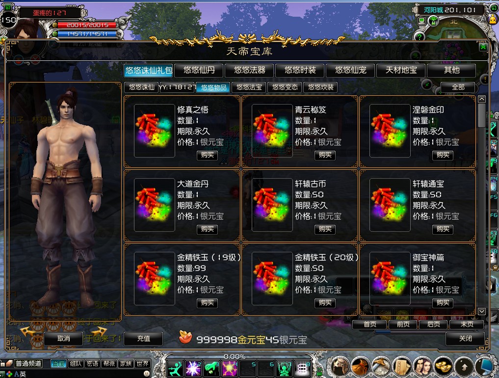 2月5日更新:商城所有物品修改为1银,上架8极游龙和重新上架修真之悟,右击使用直接满级