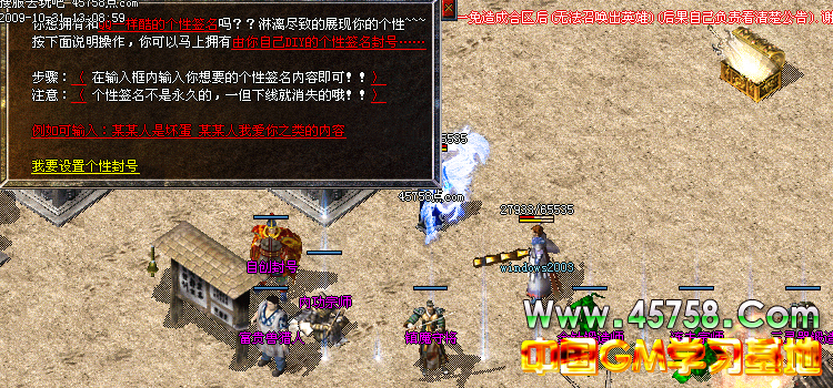 欢迎进入$SERVERNAME服务器!最新消息.请玩家注意.不要在老区-新区建立同样的角色名字--帐户---英雄名字--一免造成合区后(无法召唤出英雄)(后果自己负责看清楚公告).谢谢玩家配合.即使您不消费.只要花足够的时间也能成为牛B人物。
