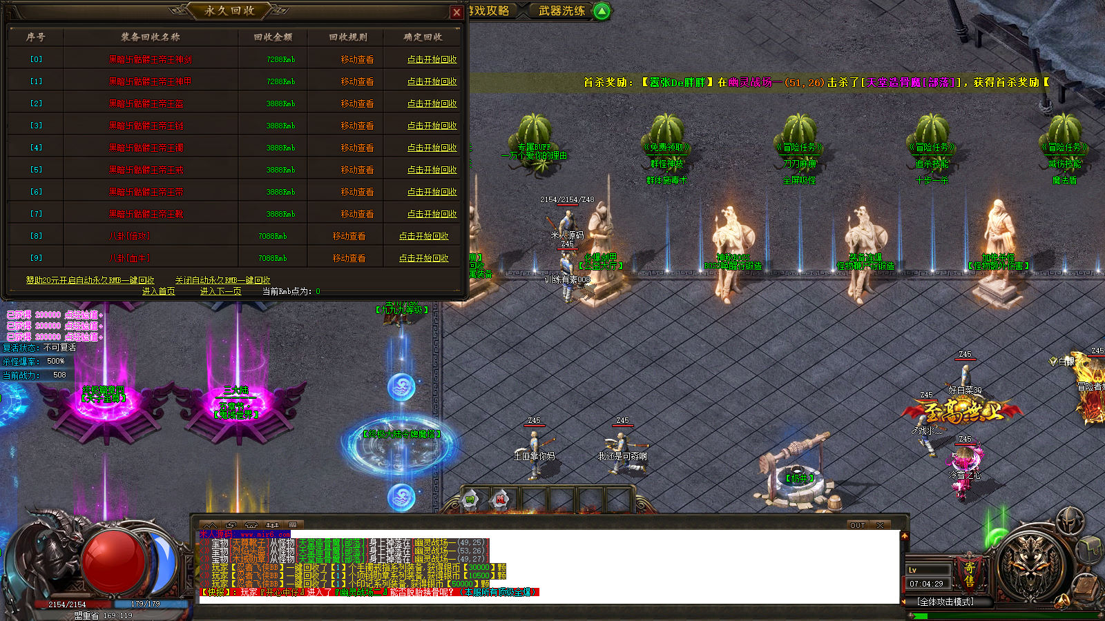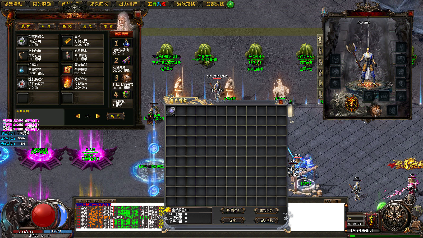 - ☉ 热血传奇单机版V176怀旧复古智能假人攻沙陪玩单机一键安装GM后台免虚拟机