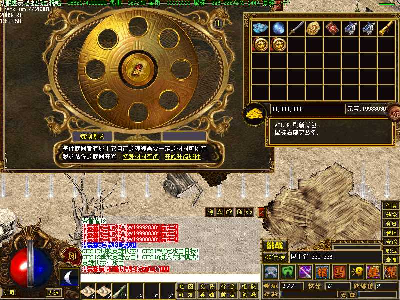 - ☉ V8引擎传奇端游【荒域专属单职业九大陆】Win一键端+配套补丁网站+架设教程