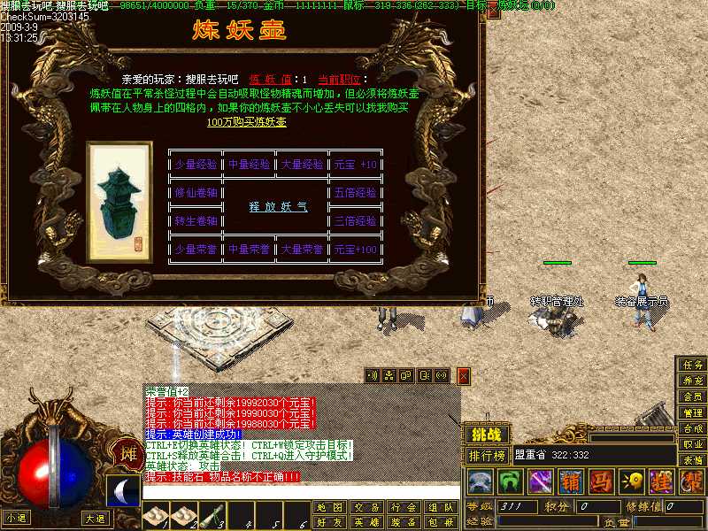 就可以获得寒月之冰。然后传送到火龙巢穴,跑到最后一层,杀火窟神龙!就算你穿终极套也会发现