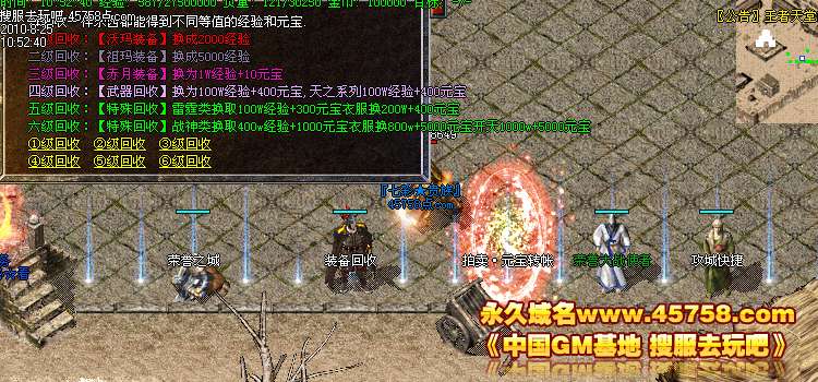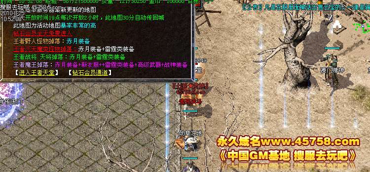 【王者天堂】每天15点.19点.0点开放.此地图任何大小怪物都可以有几率爆出雷霆和战神装备.