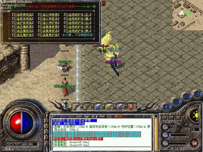 游戏介绍②:人物,英雄上线自动学会连击招式,技能送至5级,内功送36级,无须大家再花钱学习