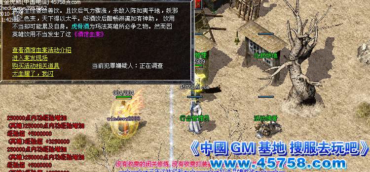 ?每天下午1点和晚上11点进入血案现场,杀死酒馆老板娘,可获得虎骨酒一瓶,保护10分钟即可随机获得倚天衣服一件和200000W元宝。