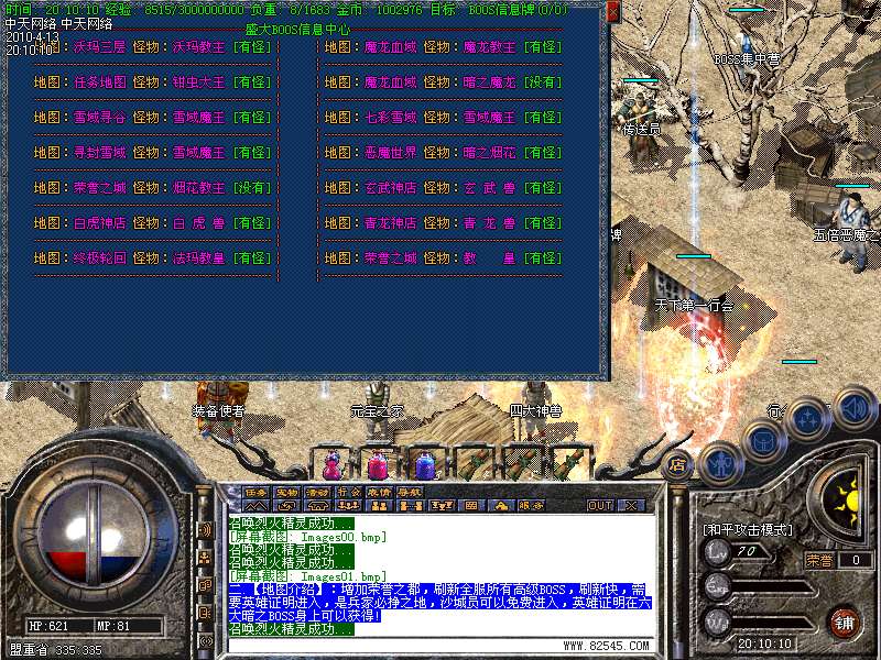 k.超级地图:荣誉之都,所有BOSS20分钟刷新一次,暴率相当的高