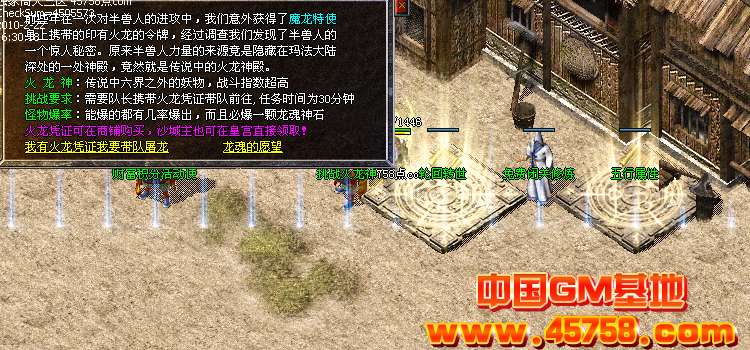 活动⑥: 团队挑战火龙神,火龙神必爆一颗龙魂,凑齐7颗龙魂即可兑换倚天剑一把