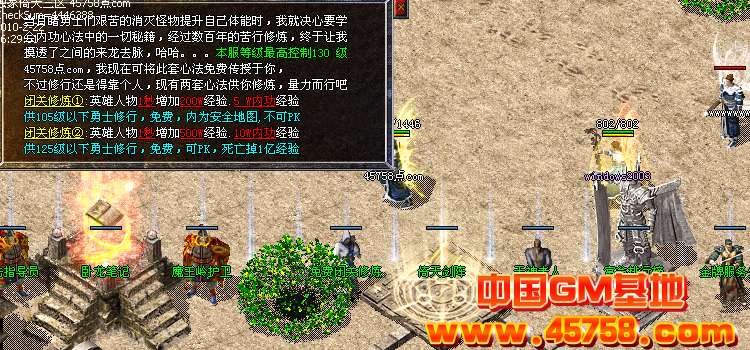 游戏介绍②: 本服等级控制为130级,免费闭关可**至125级,无收费闭关**.游戏介绍③: 等级升至75级奖励元宝200个给大家购买药品,无其它升级奖励,