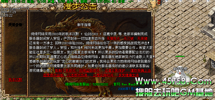 - ☉ GEE引擎传奇端游【梦苍穹公益版】Win一键端+配套补丁网站+架设教程