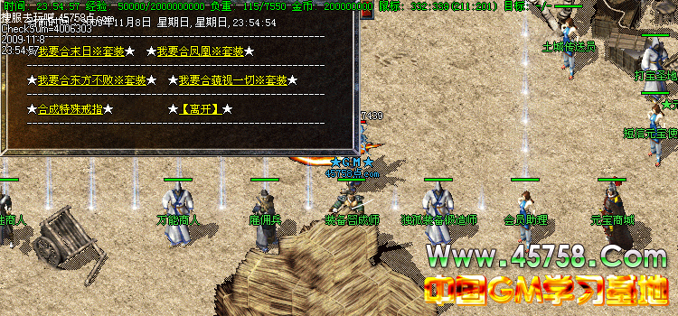温馨提示:在土城 338 341 有个"装备回收员",在那里玩家可以把多余的高级装备兑换成元宝.