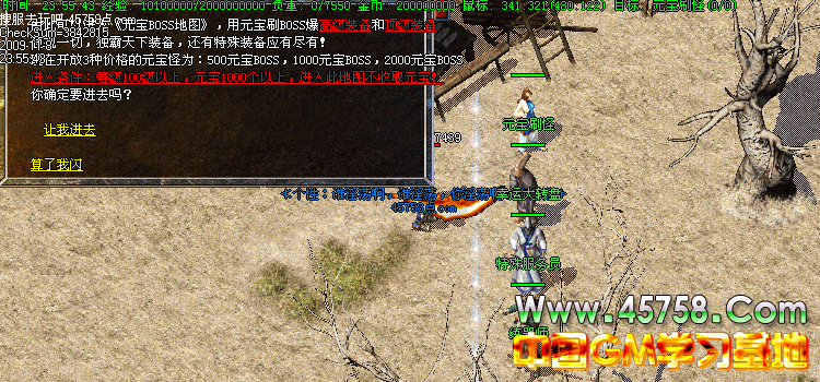 温馨提示:本服传送员处可进入三个元宝地图,爆本服所有装备,爆率高.