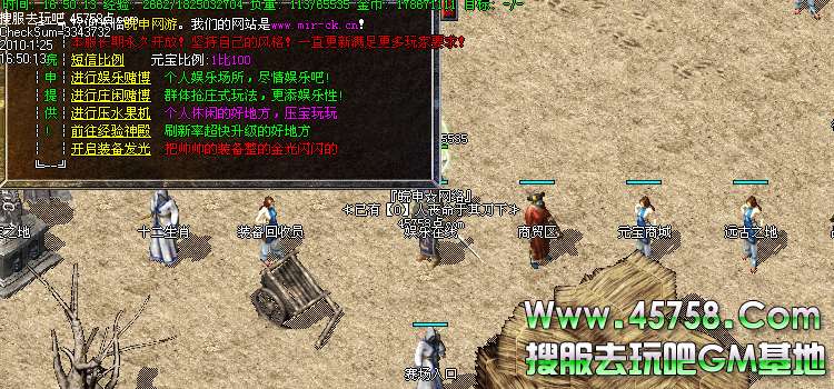 新近更新:增加赤月装备回收,祖玛装备回收。战斗圣殿活动!战斗圣殿打特定的几个怪可暴幸运项链!