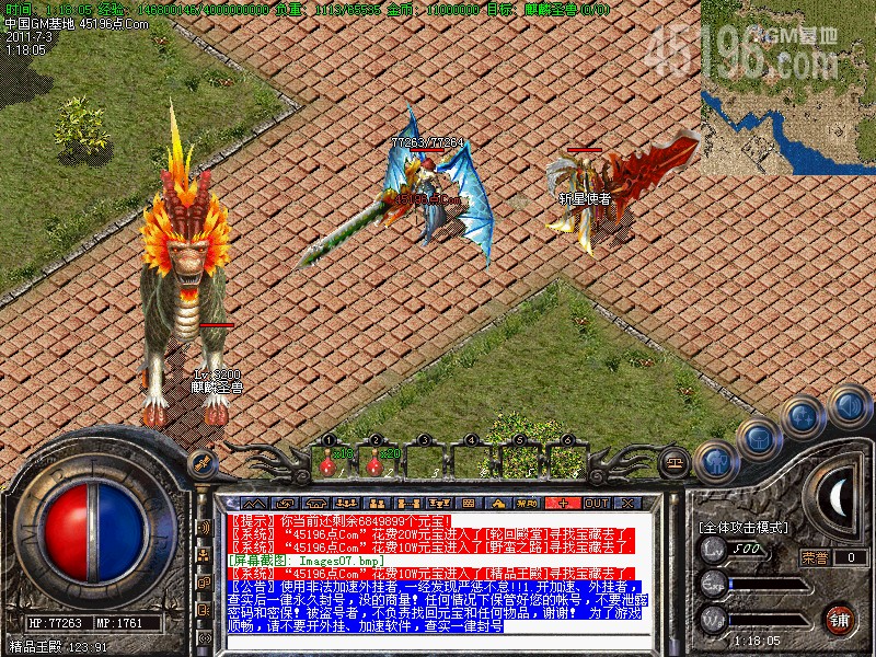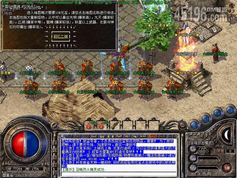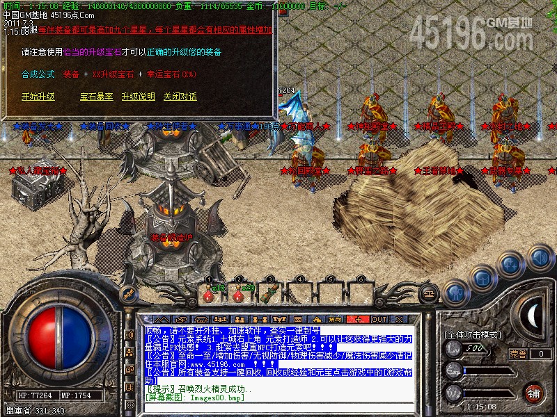 新手介绍:新人200级送江湖套,去新手宝地打元宝进10万地图,人形怪爆率超高,打到穿日套就可以去20万地图。