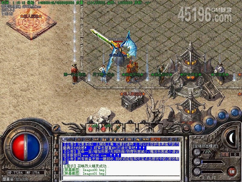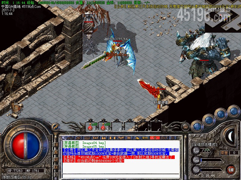 新区第三天系统自动攻城,无需提交祖玛头像攻城奖励1000W元宝+傲刹武器一把,老区奖励500W元宝。
