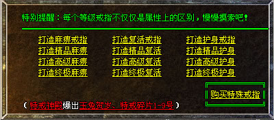 ④.必爆特戒:每天晚上9点沙皇宫楼梯3只特戒使者杀死必爆特殊戒指