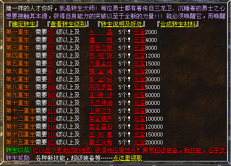 v08、【转生系统】独创15重转生,转生后人物属性更强大,PK更爽,更激情