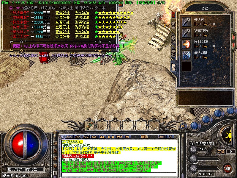 6:本服无特殊戒指,为了能更好的团队作战和团队打宝,本服只开通记忆套传送,可以更快的进入打宝地图,散人玩家可以借助传送符进行地图传送,自己挑战超级BOSS要特别需要耐心,但是报酬是相当丰厚的撒!~~