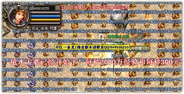 活动不断:每隔30分钟土药刷元宝神龙,每隔一个小时土药激情抢水,每隔40分钟刷3只主宰元神,每隔一小时刷传奇之帝