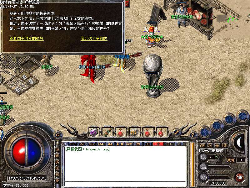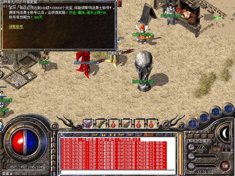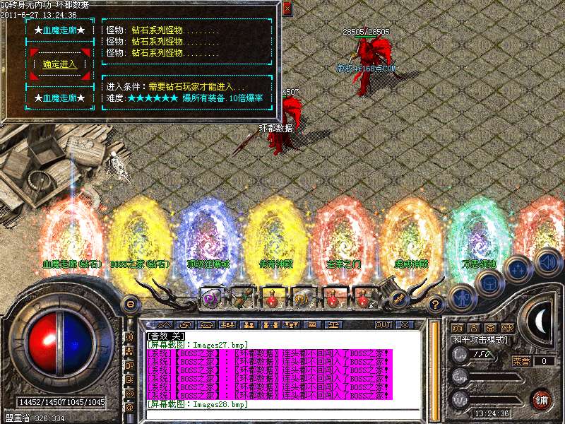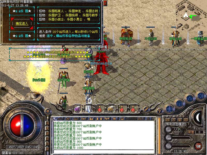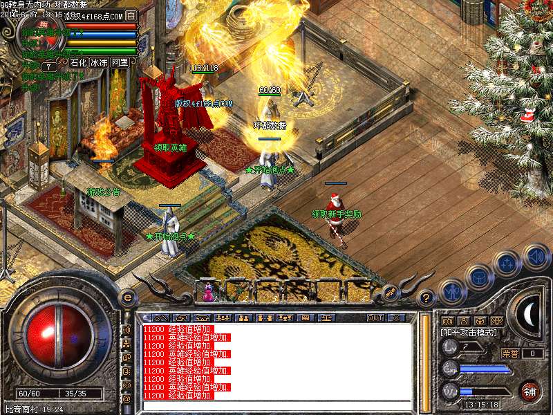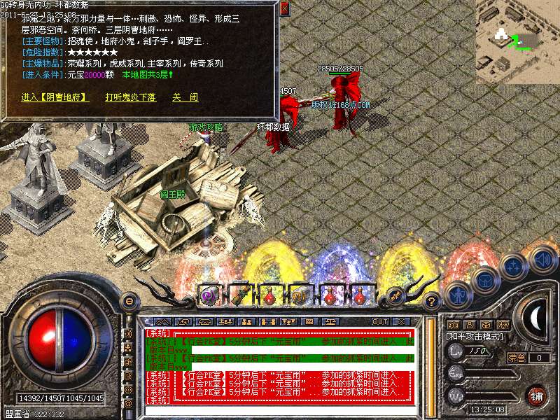 地图介绍 杀手天堂→进入此地图每秒增加一千万经验杀一人奖励2000元宝被杀扣取2000元宝