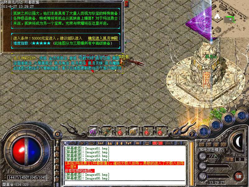 地图介绍 狐月山→此地图的怪物非常凶猛,爆全服所有装备