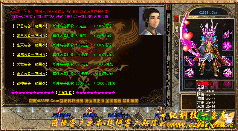 - ☉ GEE引擎传奇端游【伏魔录神器单职业】Win一键端+配套补丁网站+架设教程