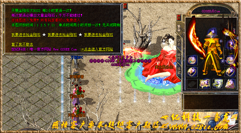 11.最新活动:每两小时“天赐金刚石”BOSS复活一次,必爆大量金刚石,所有玩家可以进入,详情点击NPC“天赐金刚石”。