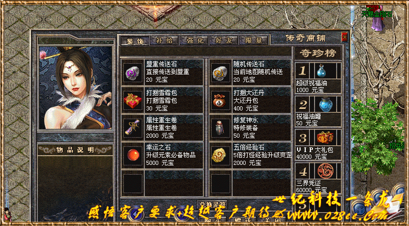 4.本服会员为≮圣灵VIP≯,命令:@圣灵网络,有专属会员地图,还新增≮VIP精灵走廊≯,狂爆所有装备。更是可以进入三界神话地图,爆本服终级弑神装备。