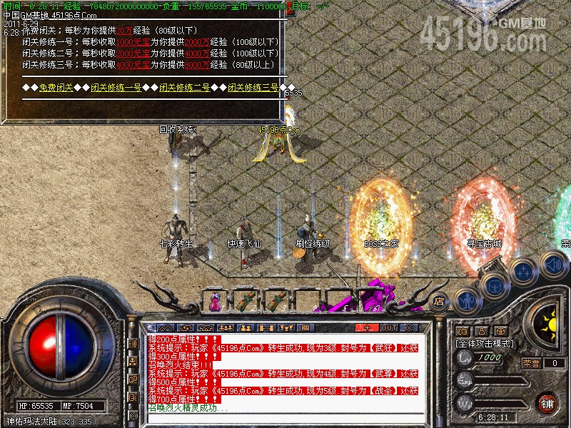 六.【特别地图】本服加入了七彩转身:转身的级别越高得到属性点越多.有些地图可是免费进入的哦!!