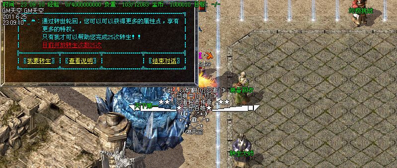 【转世轮回】 目前版本开放30转,沙巴克首届奖励50万元宝,历届奖励25万元宝!
