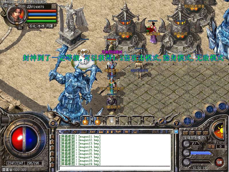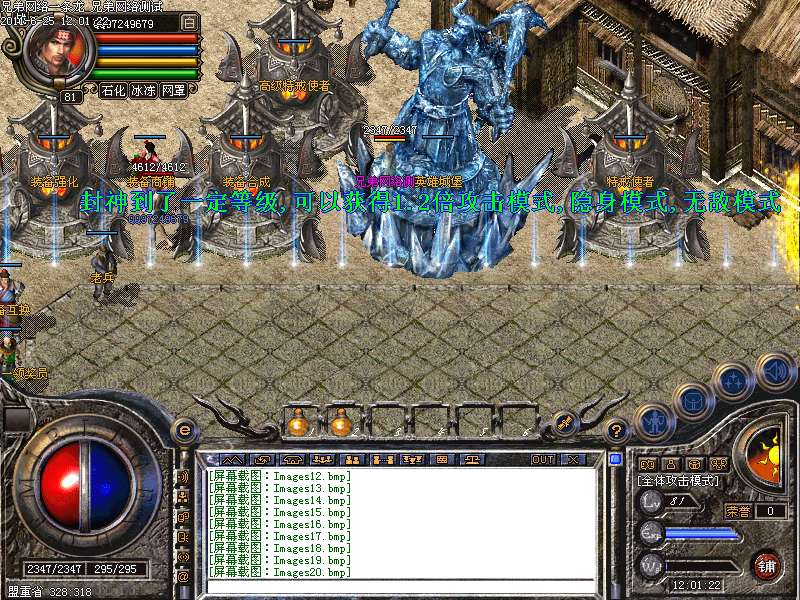 封神到了一定等级,可以获得1.2倍攻击模式,隐身模式,无敌模式
