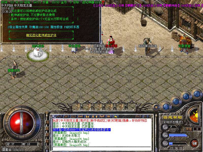 3。100级道士召唤【麒麟护卫】120级道士召唤【麒麟神兽】180级道士召唤【终极麒麟神兽】防御攻击速度都有一定提高。4。装备升级请点击包裹栏右下角漩涡按钮进行升级,如果玩家看不到漩涡按钮请下载补丁!