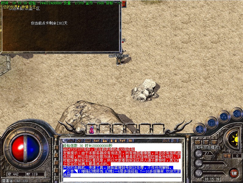 <255,252>◤公告◥:20级以后都要月卡才能正常游戏,否则将被禁止功击,禁言,月卡在杂商铺用购买,双击使用,元宝不够可以在官网自助充值,