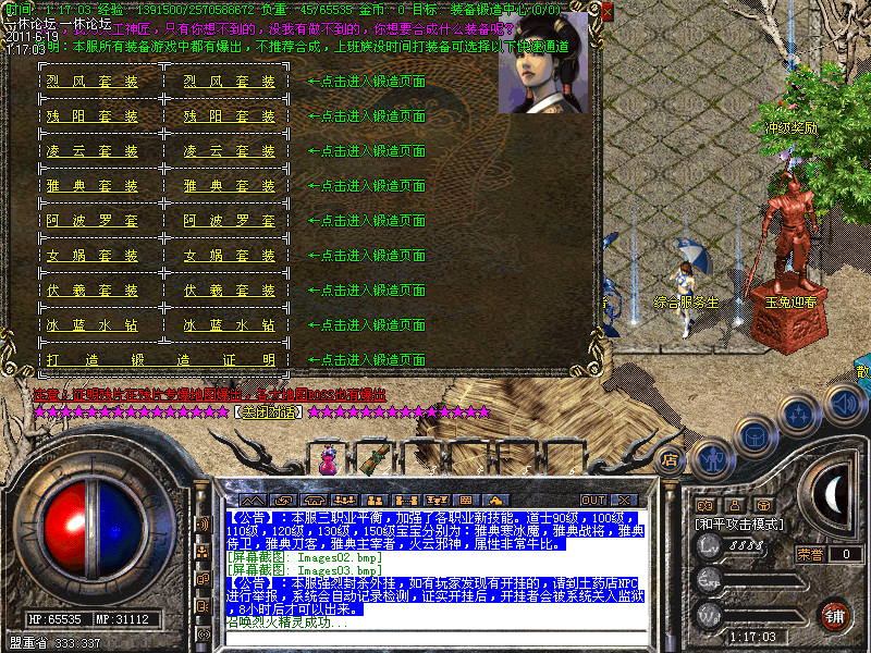 11散人淘宝地图是个很不错的地方,怪物好打,偶尔可以爆出:残阳,凌云,甚至是雅典装备。