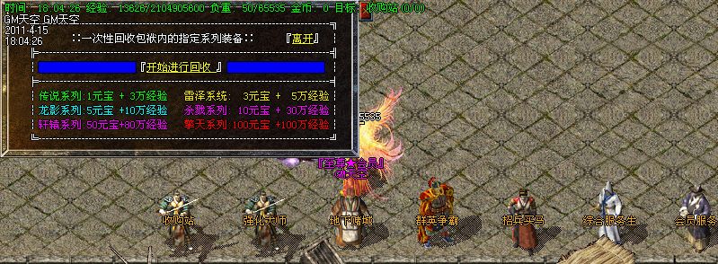 <255,235>ぐ系统公告:从圣战到战神装备都可以在土城[回收装备]处进行回收处理,可以一键批量回收和单件回收,无法批量回收的请单件回收