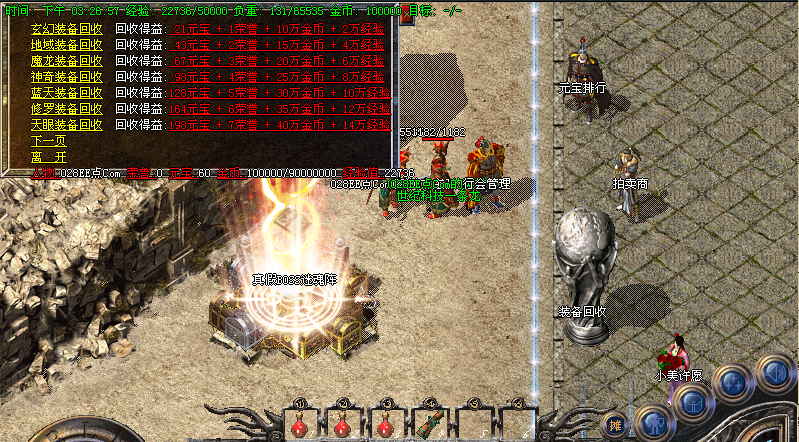 【装备回收】在险恶地图内打到的可升级的装备可进行元宝回收,可回收非常多元宝,荣誉,金币,经验,非常值得大