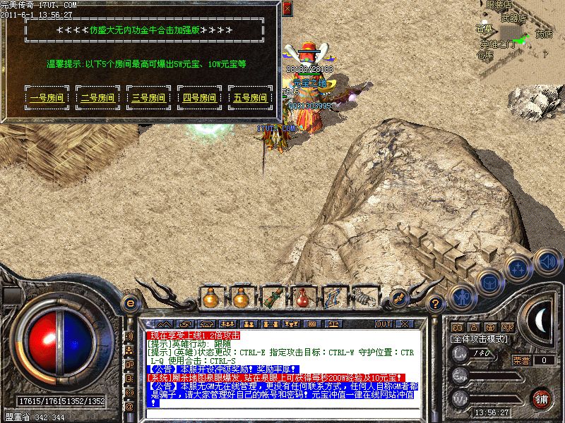 【元宝竞技】在此地图杀人可增加元宝,每15分钟刷一只送财金猪爆元宝.