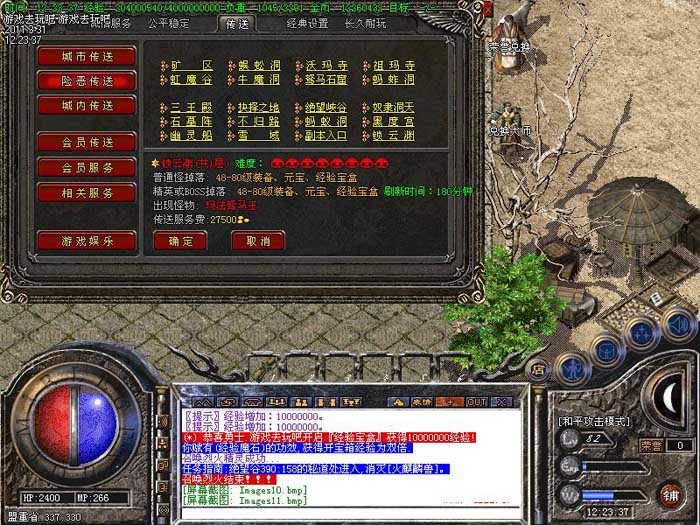 游戏去玩吧在各城市添加:N个BOSS地图—比奇:【暗影神殿,地下宫殿,火龙神殿,玄冥冰原,众神领域,雷炎洞穴】封魔:【地狱之门,死亡之地】等等<新地图爆绝世-魔界>运气好.还爆妖界.!