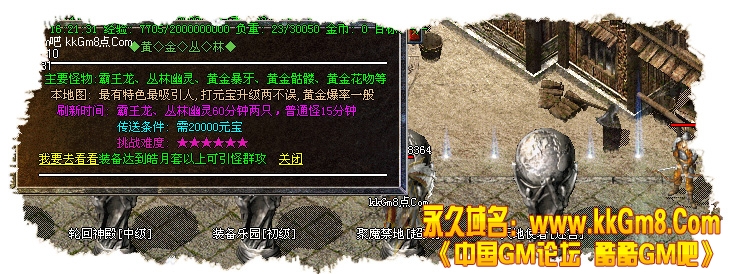 4.【隆重推荐两大地图→黄金丛林:战士和法师可引怪群攻,爆大量怒血等装备回收超级丰富元宝,同时每只怪蕴藏大量经验,故此地图也可作为练级圣地;→广寒仙境:全新3D真彩地图,怪物超猛,黄金装备爆率很高,是打装备好去处。当然进这两地图得有其他地图的装备做基础。】