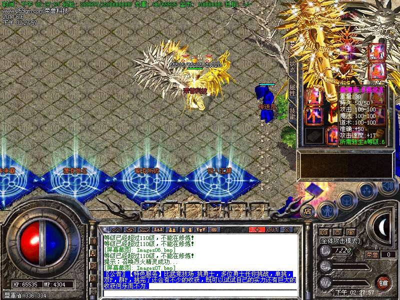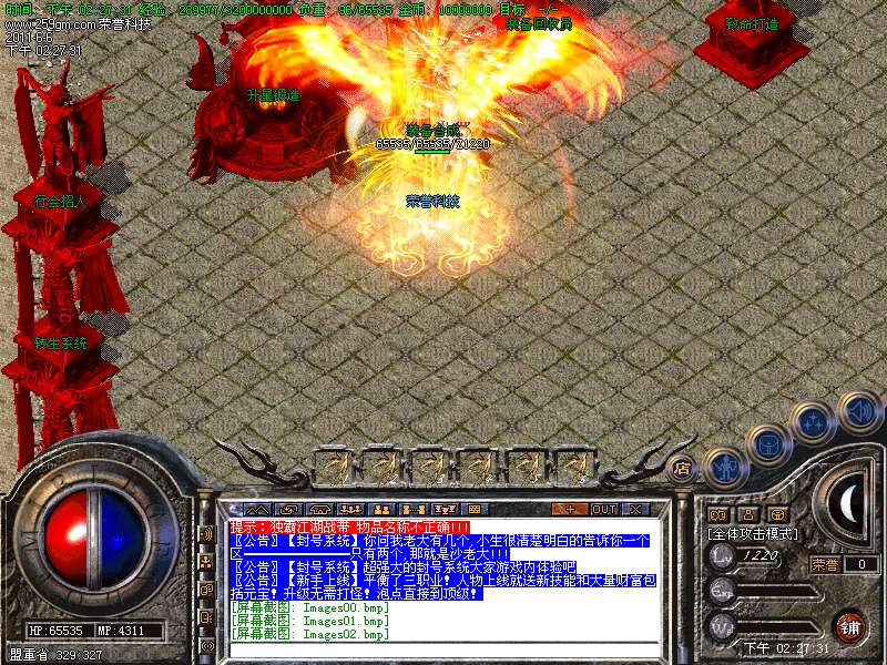【转生系统】人物转生需要到盟重土城左边的转生雕像那里完成转生.转生后可获得属性奖励.还有酷炫的转生封号.