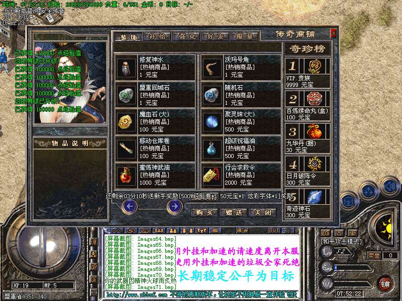 [251]【游戏公告】本服:新添加了玛法迷失5大终极地图,里面终极boss好暴金刚石,人民币,高级装备。
