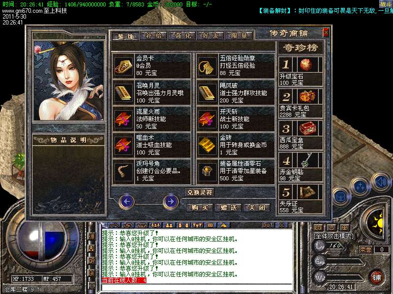 【游戏介绍】本服会员卡300元宝一个,送90级和火龙一套!本F会员功能强大,免费传送众多元宝收费地图免费进入!绝对是有了会员不愁装备!