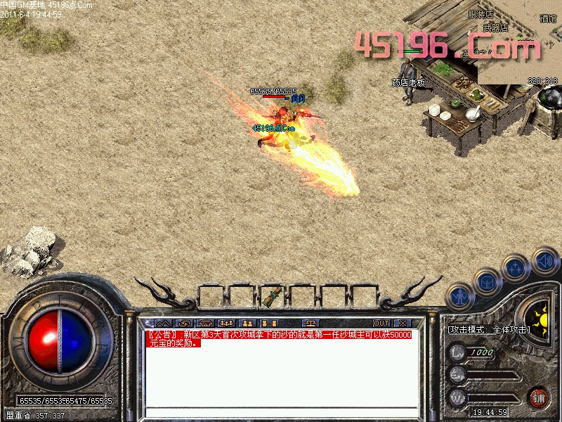 〖公告〗:开区第3天首次攻城拿下的沙的就是第一任沙城主可以获50000元宝的奖励。