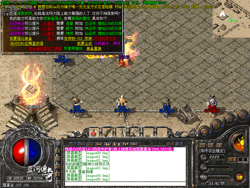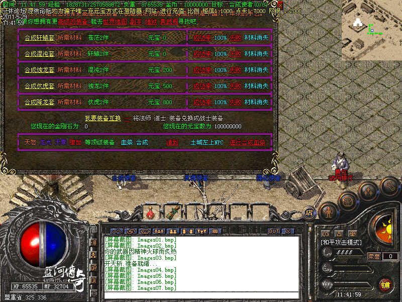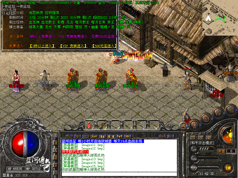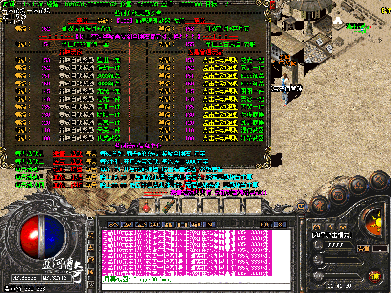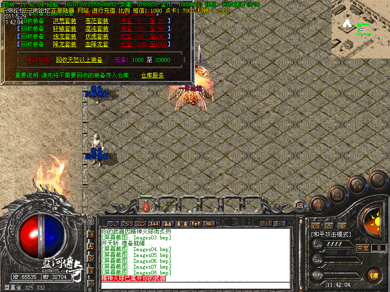 1-新手入门:新手刚进游戏建议去魔龙,火龙,盘古等地图打些初级装备回收元宝和经验练级,游戏里凡是50级以上的物品,