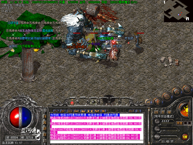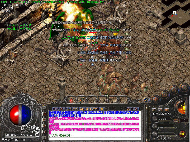 苍龙二室的17.12进入苍龙皇室.地图里怪物攻击非常震撼,建议组队进入.小怪30分钟刷新一次,大型BOSS终极BOSS两个小时刷