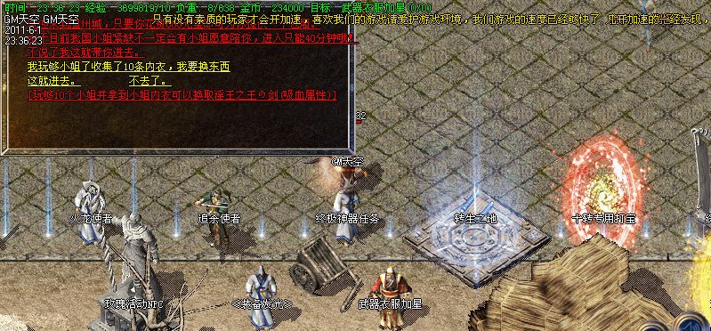 5.【等级提升】:建议新手先去脑残使者处做完任务,到新手处泡点,可免费泡到顶级,经验答200W一秒之多 ,绝对好升