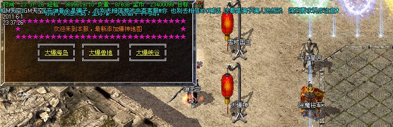 6.【游戏介绍】:42级技能,狮子吼,无极真气,灭天火此类技能,可以在魔龙地图获得!