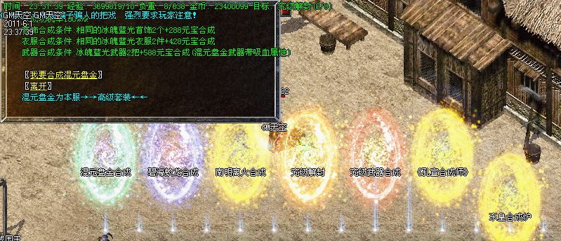 3.【特色活动】:土药店每5分钟刷新一棵元宝树,每次必暴10元宝以上,还有几率爆出高级装备和终身会员卡!
