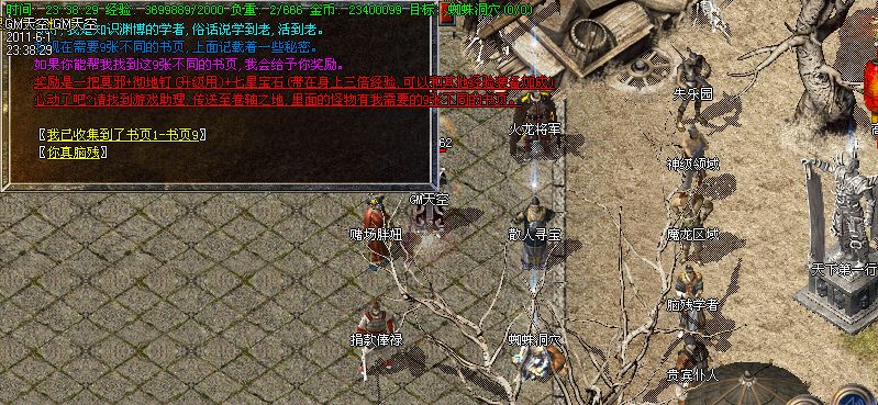 11.【任务信息】:在卷轴之地打到9张不同的书页,就能找脑残学者领取一把莫邪+彻地钉(升级用)+ 七星宝石(带在身上三倍经验,可以和其 他经验装备加成)