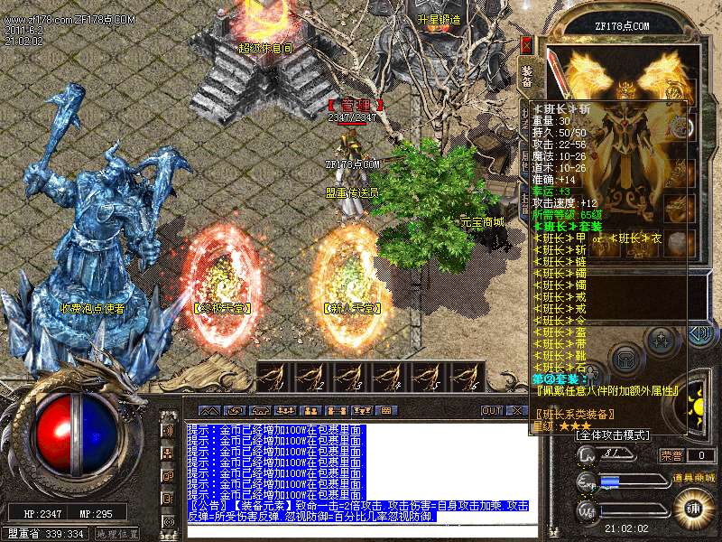 【转生系统】人物转生需要到盟重土城左边的转生雕像那里完成转生.转生后可获得属性奖励.还有酷炫的转生封号.