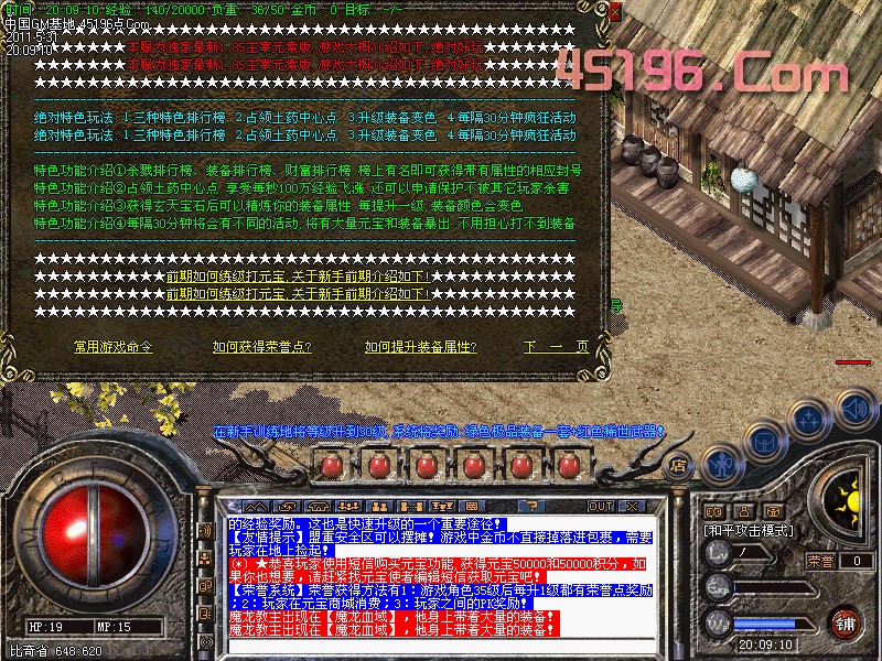【攻城奖励】本服攻沙时间为3天,新区第一任沙城主获得200000元宝!!攻下城堡之后在皇宫找攻沙奖励NPC领取。切记是在10点以后,15分钟内领取奖励