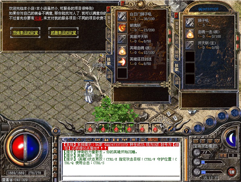 最新增加了盛大的百级技能[血魄一击].次技能十分绚丽 威力强大 淫荡无比 商铺可购买.